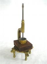 Die Spinndüse ist heute eine Metallplatte oder anders geformt ein Hütchen mit bis zu vielen tausend Löchern von 0,02bis einem Millimeter Lochdurchme Früher, vor dem Jahr 1900, wurden Spinndüsen aus Glas verwendet – mit allen Nachteilen dieses spröden und empfindlichen Werkstoffs | ![]() Bohrvorrichtung von 1908 |