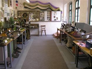 Blick in die Auststellung Bohrmaschine für Spinndüsen von 1962
